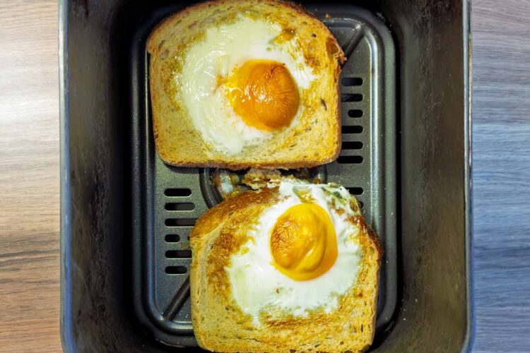 This recipe is also good because it does not need much oil. The air fryer uses hot air to cook the food evenly. The result is crispy toast with a soft or slightly runny egg, depending on how long you cook it.