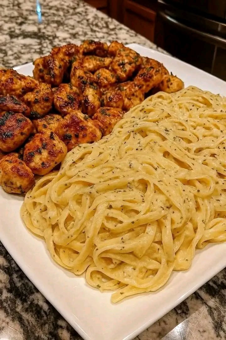 Creamy Garlic Butter Chicken & Linguine in Alfredo Sauce